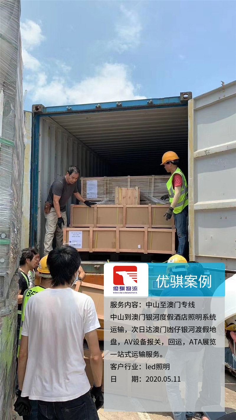 業務內容:中山到澳門銀河度假酒店照明系統運輸,次日達澳門凼仔銀河渡假地盤,AV設備報關,回運,ATA展覽一站式運輸服務。